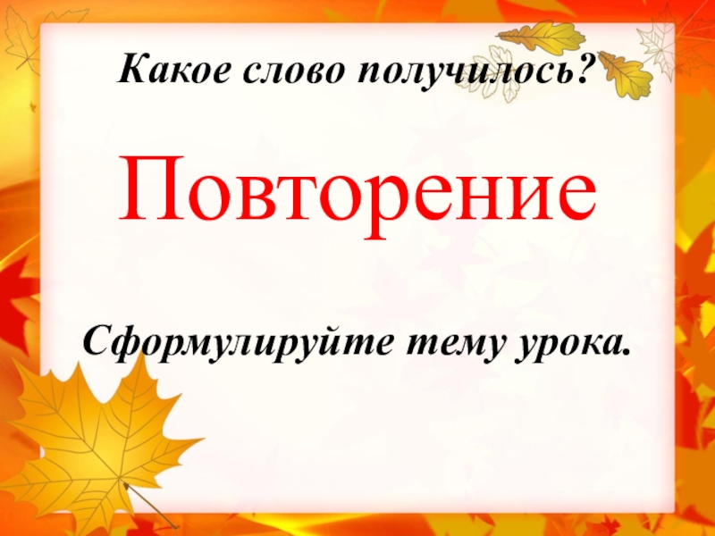 Какое слово получилось?ПовторениеСформулируйте тему урока.