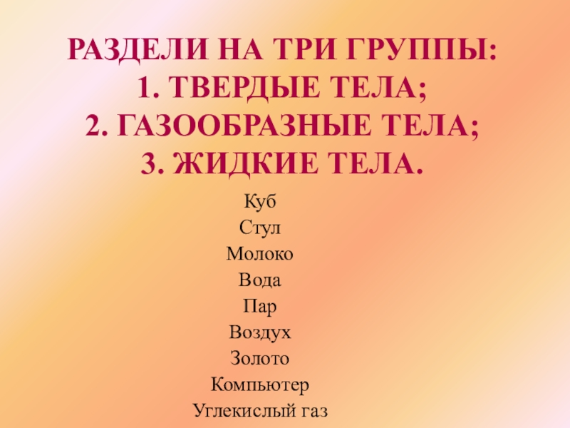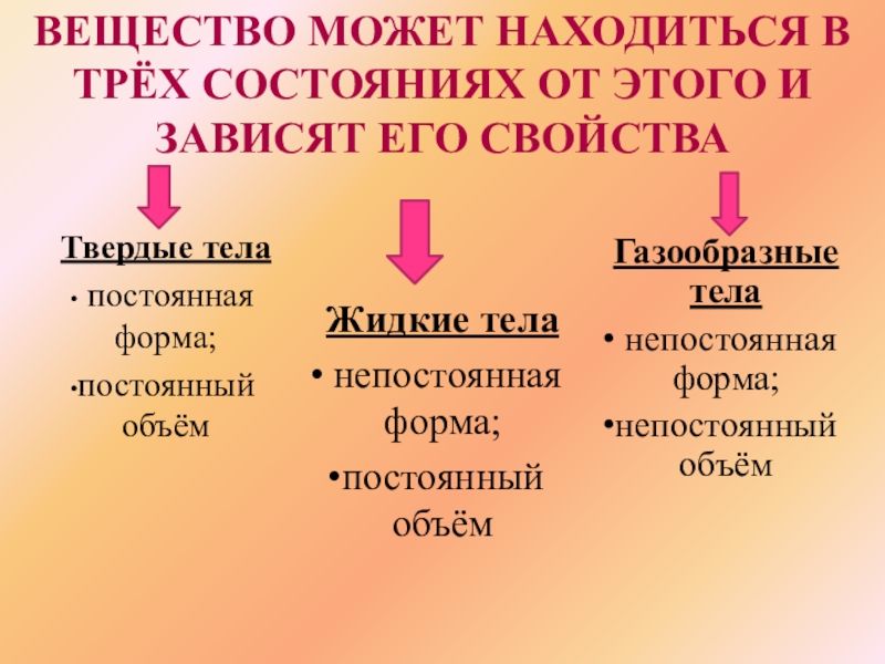 Например: лед (твердое тело) – вода (жидкое тело) – пар (газообразное тело).