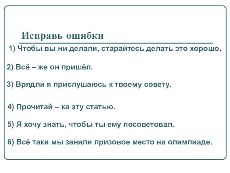 7. Найдите предложение с положительным смыслом: а) Я не могу прийти. б) Вы не сможете приехать. в) Я не мог не выполнить задание.