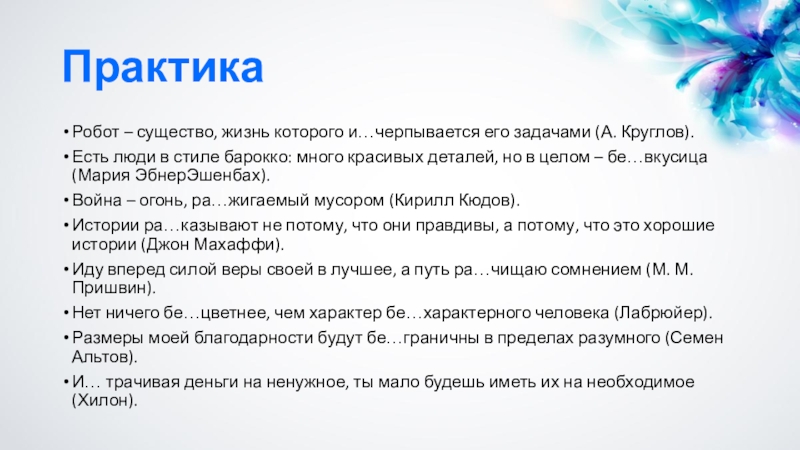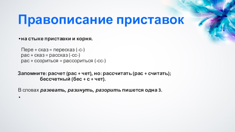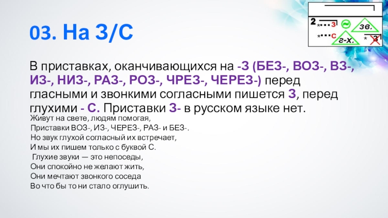 Приставки ВОЗ-, ИЗ-, ЧЕРЕЗ-, РАЗ- и БЕЗ-.