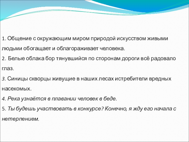 Слайд 91. Общение с окружающим миром природой искусством живыми людьми обогащает и