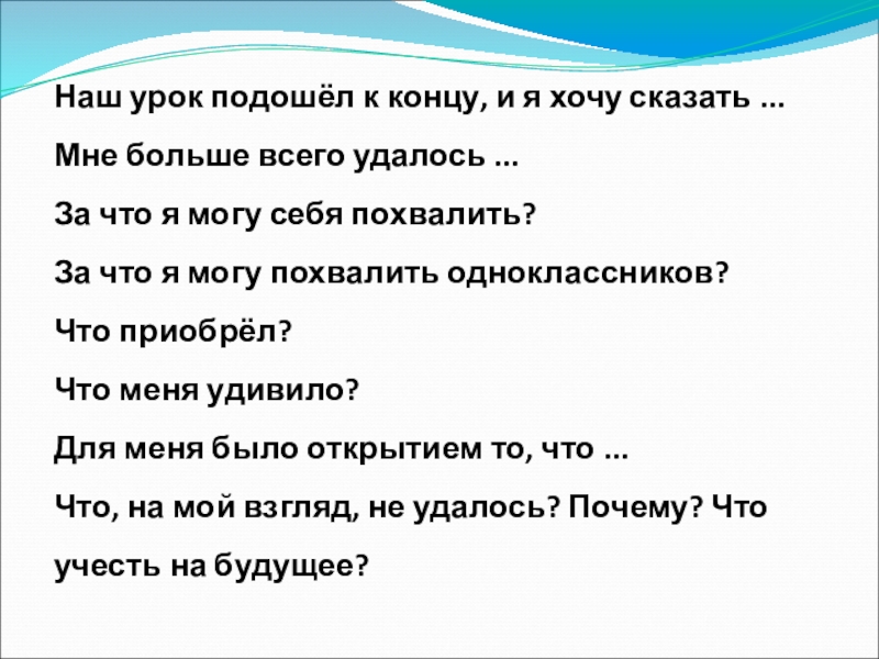 Слайд 12Наш урок подошёл к концу, и я хочу сказать ...