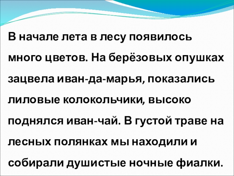 Слайд 8В начале лета в лесу появилось много цветов. На берёзовых опушках