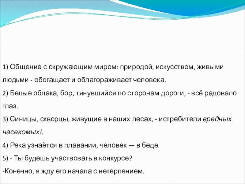 Слайд 101) Общение с окружающим миром: природой, искусством, живыми людьми - обогащает