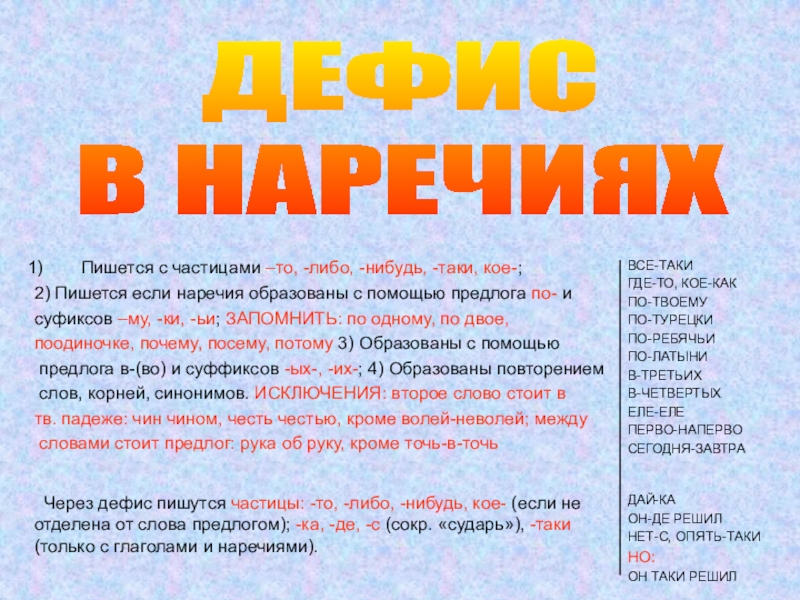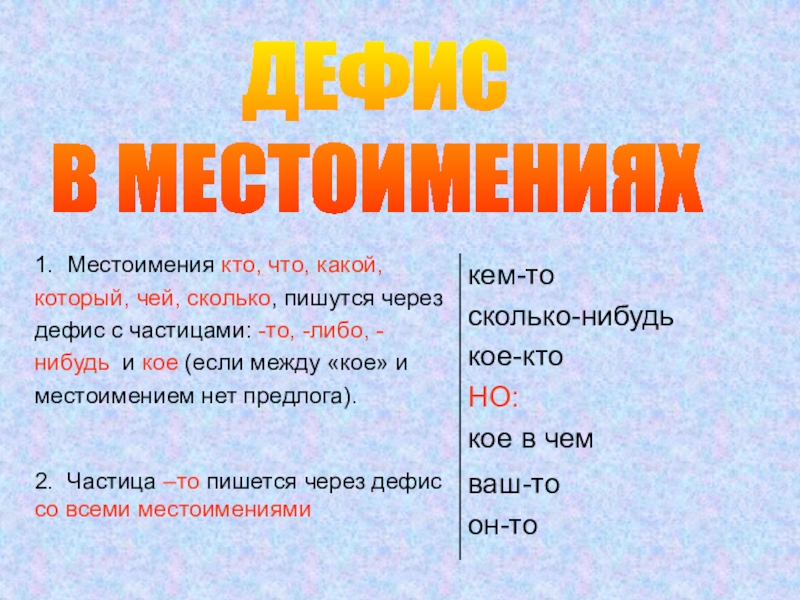 ДЕФИС В МЕСТОИМЕНИЯХ