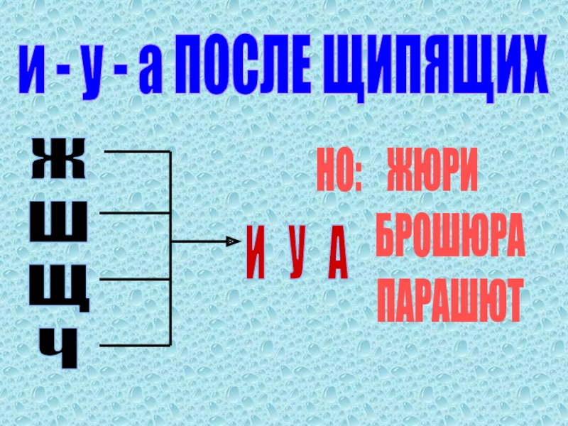 Слайд 9и - у - а ПОСЛЕ ЩИПЯЩИХ