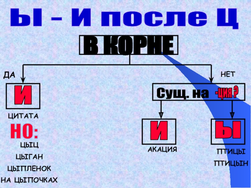 смуглолиц..й ц…ганенок; трещат ц…кады; располагаться в тени акац…и; дворц…вая решетка; поляна заросла ц…корием; ц…гейковый воротничок