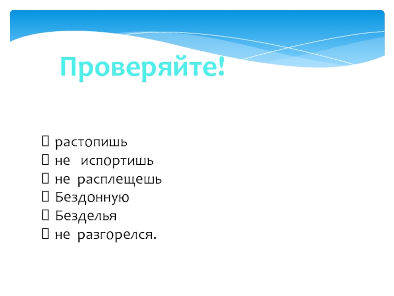 Проверяйте!растопишьне  испортишьне расплещешьБездоннуюБездельяне разгорелся.