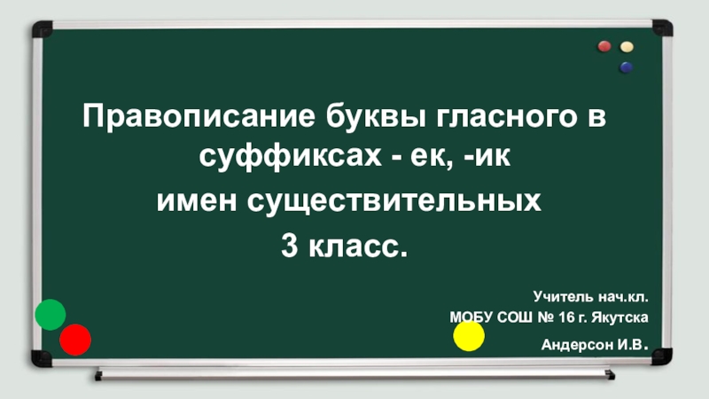 Презентация, доклад на тему Правописание буквы гласного в суффиксах – ек, - ик имен существительных. 3 класс
