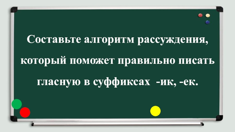 Составьте алгоритм рассуждения, который поможет правильно писать гласную в суффиксах -ик, -ек.