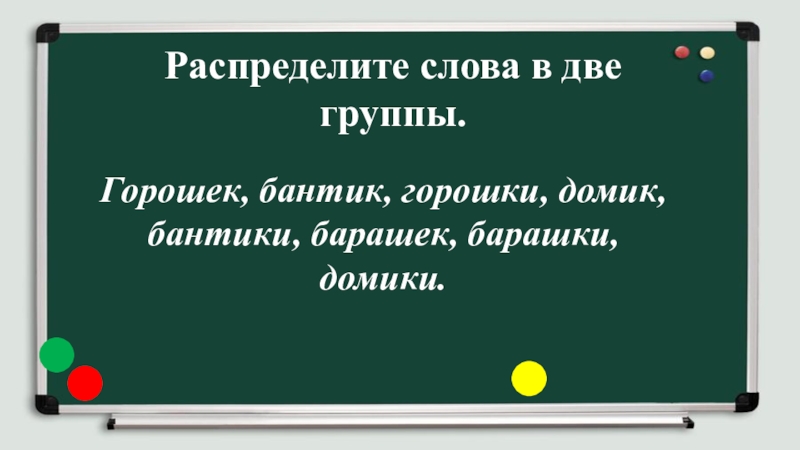 Распределите слова в две группы. Горошек, бантик, горошки, домик, бантики, барашек, барашки, домики.