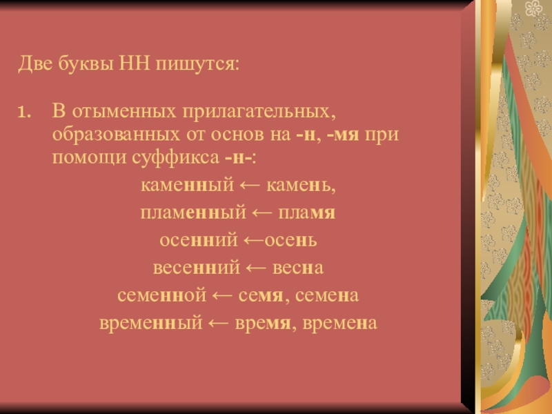 В суффиксах -енн-, -онн- отыменных прилагательных: