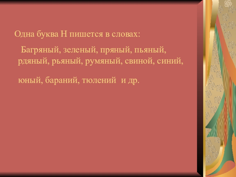 Багряный, зеленый, пряный, пьяный, рдяный, рьяный,