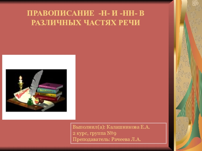 Слайд 1ПРАВОПИСАНИЕ -Н- И -НН- В РАЗЛИЧНЫХ ЧАСТЯХ РЕЧИ