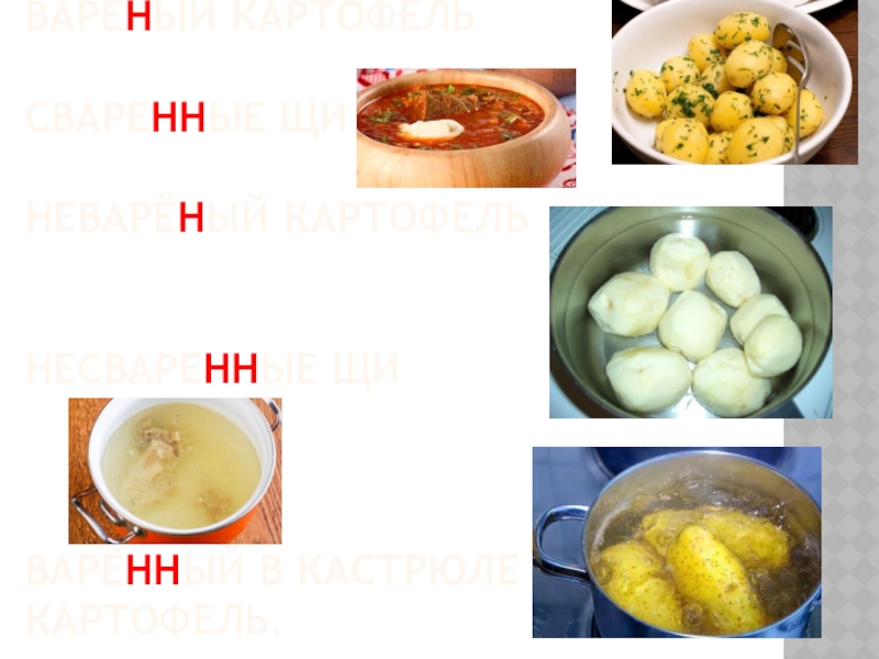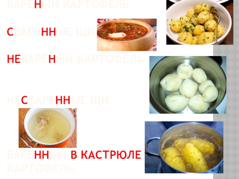 Слайд 3Варёный картофель сваренные щи неварёный картофель несваренные щи варённый в кастрюле картофель.