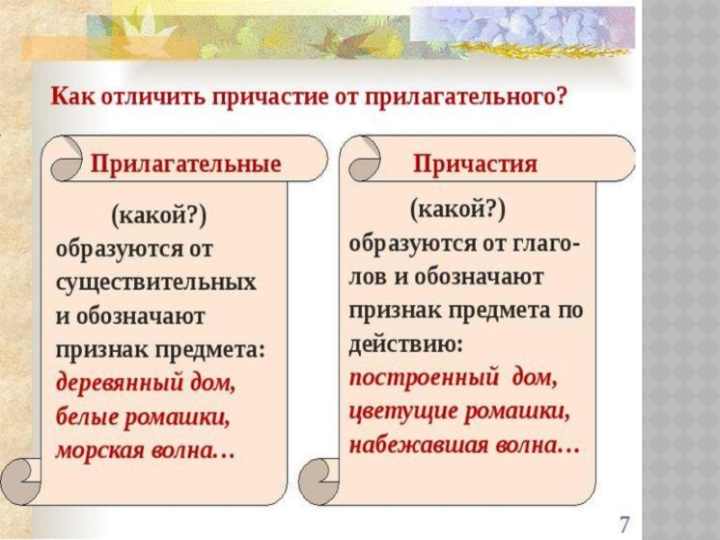Домашнее задание“5” – сочинить лингвистическую сказку о причастиях; “4” – написать меню для ресторана , включив в