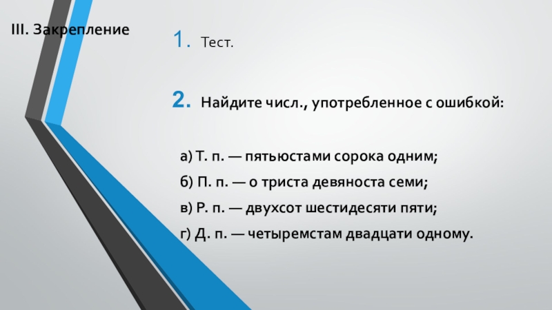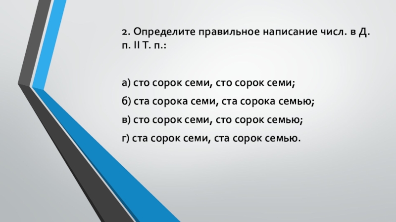 Слайд 182. Определите правильное написание числ. в Д. п. II Т. п.: