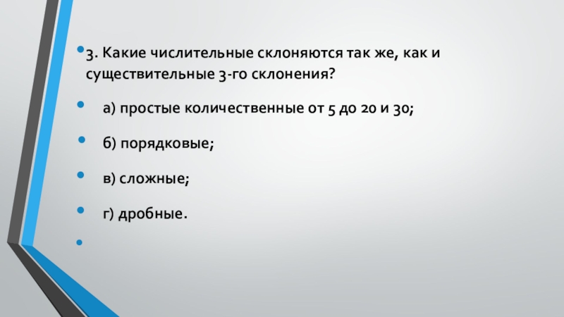 Слайд 123. Какие числительные склоняются так же, как и существительные 3-го склонения?