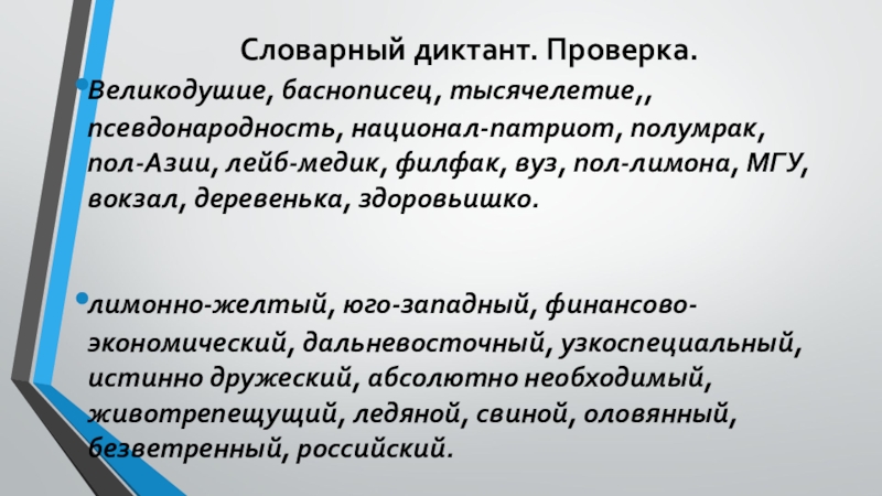 Великодушие, баснописец, тысячелетие,, псевдонародность, национал-патриот, полумрак, пол-Азии, лейб-медик, филфак,
