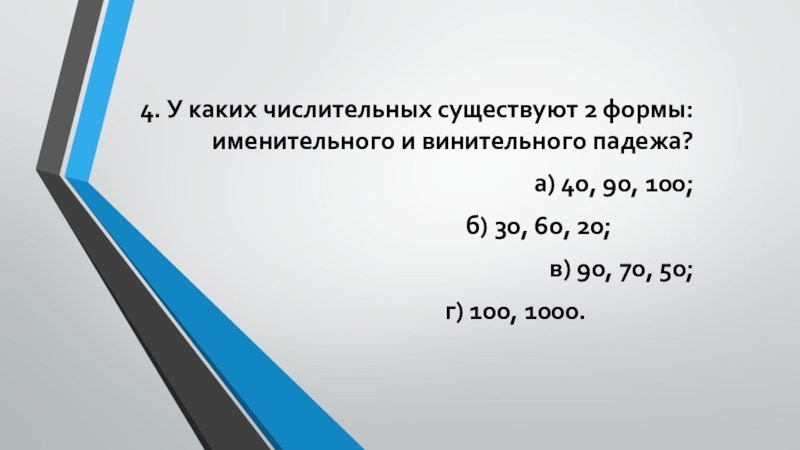 Слайд 134. У каких числительных существуют 2 формы: именительного и винительного падежа?