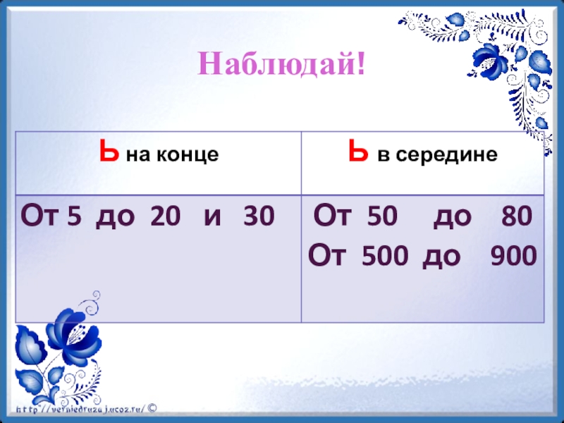 1) В числительных от пяти до двадцати и в числительном тридцать на конце пишется мягкий знак для обозначения мягкости конечной согласной.
