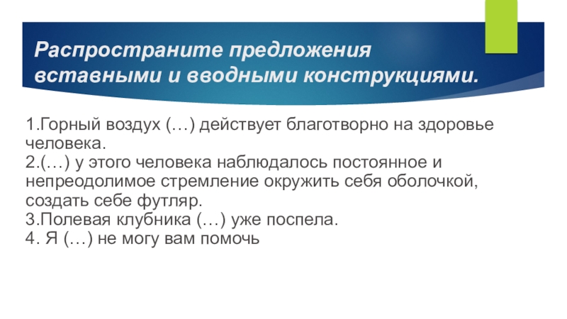 Слайд 13Распространите предложения вставными и вводными конструкциями.