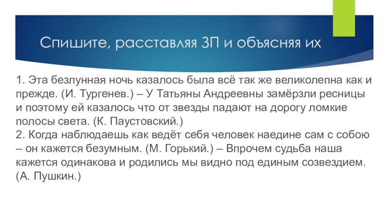Слайд 3Спишите, расставляя ЗП и объясняя их