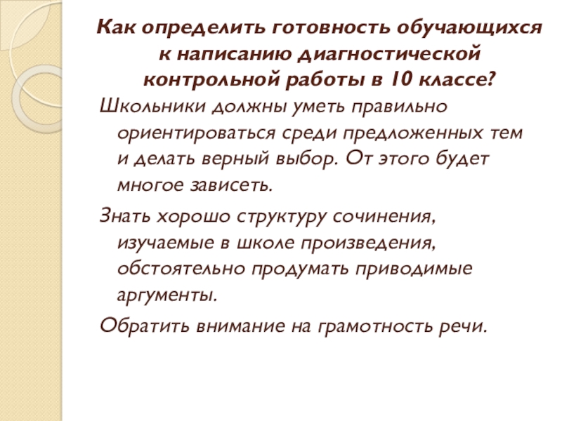Знать хорошо структуру сочинения, изучаемые в школе произведения, обстоятельно продумать приводимые аргументы.