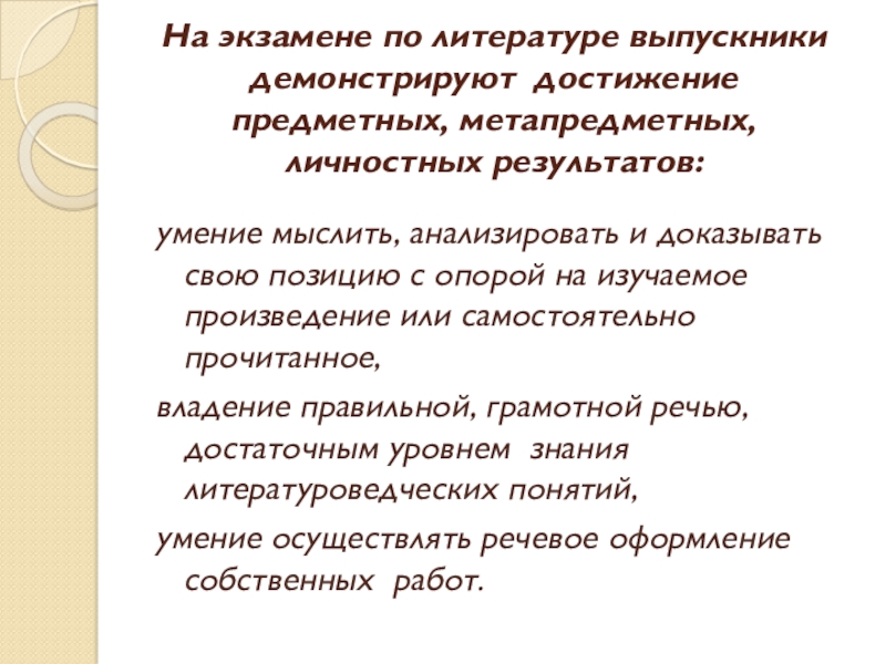умение мыслить, анализировать и доказывать свою позицию с опорой на изучаемое произведение или самостоятельно прочитанное,