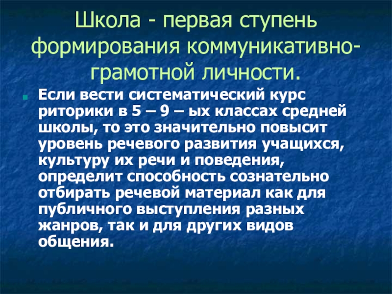 Слайд 5Школа - первая ступень формирования коммуникативно-грамотной личности.