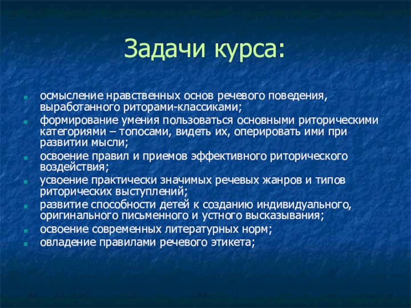 осмысление нравственных основ речевого поведения, выработанного риторами-классиками;
