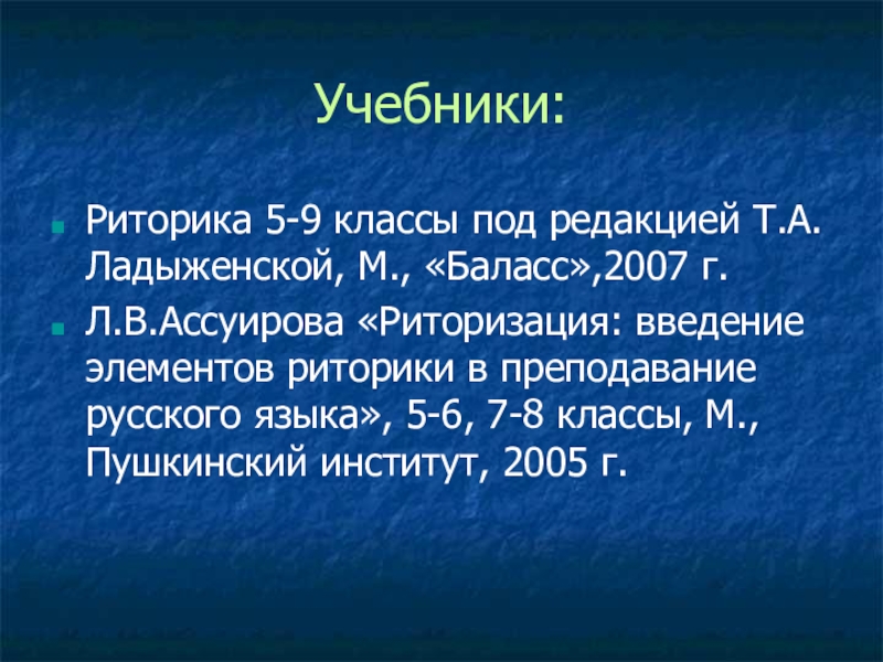 Риторика 5-9 классы под редакцией Т.А.Ладыженской, М., «Баласс»,2007 г.
