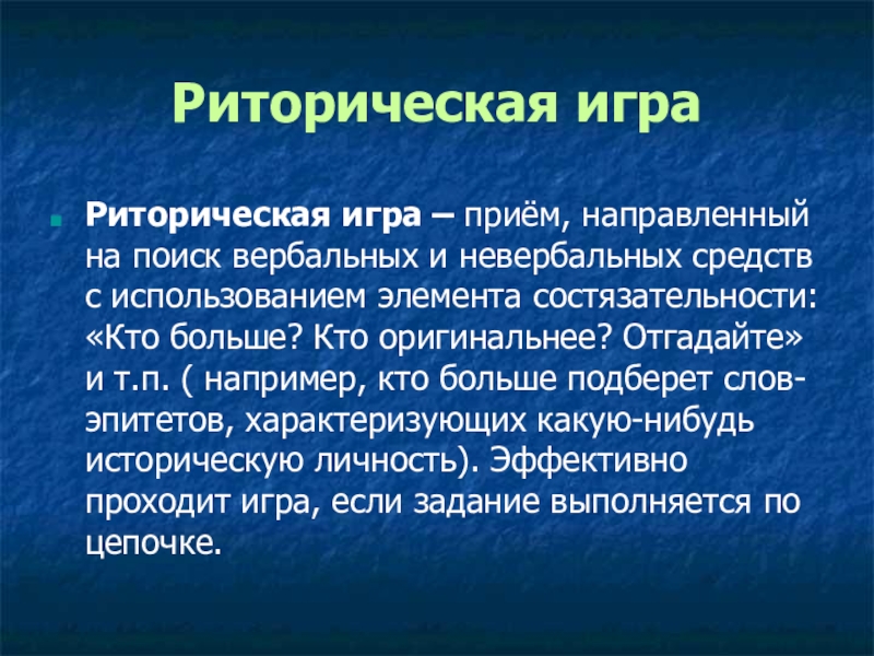 Риторическая игра – приём, направленный на поиск вербальных и невербальных