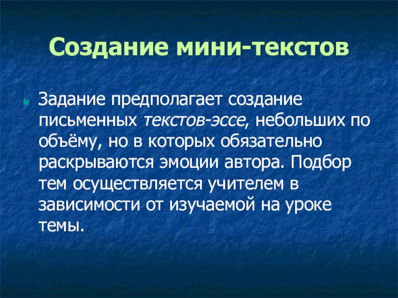 которых обязательно раскрываются эмоции автора. Подбор тем осуществляется учителем в зависимости от изучаемой на уроке темы.