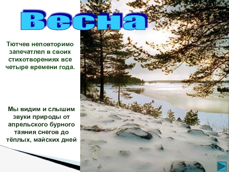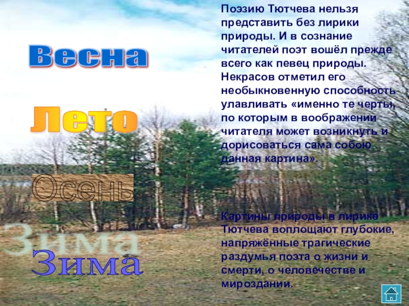 Тютчев неповторимо запечатлел в своих стихотворениях все четыре времени года.