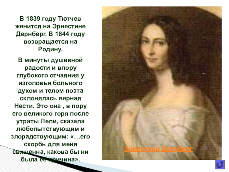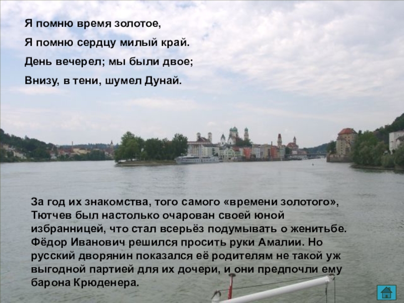 За год их знакомства, того самого «времени золотого», Тютчев был настолько очарован своей юной избранницей, что стал всерьёз подумывать о женитьбе. Фёдор Иванович решился просить руки Амалии. Но русский дворянин показался её родителям не такой уж выгодной партией для их дочери, и они предпочли ему барона Крюденера.