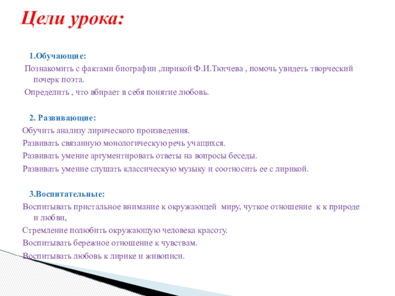 Поэтический мир Ф.И.Тютчева