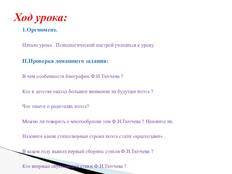 Ход урока:
