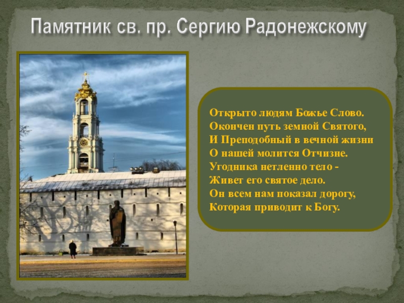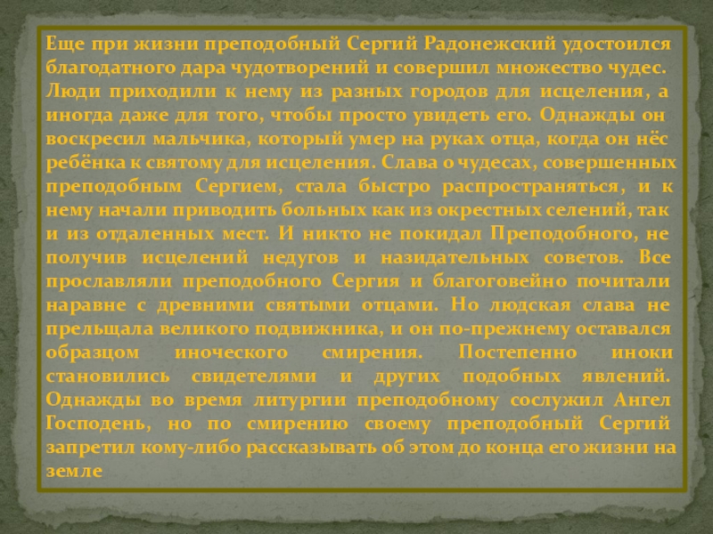 Слайд 18Еще при жизни преподобный Сергий Радонежский удостоился благодатного дара чудотворений и