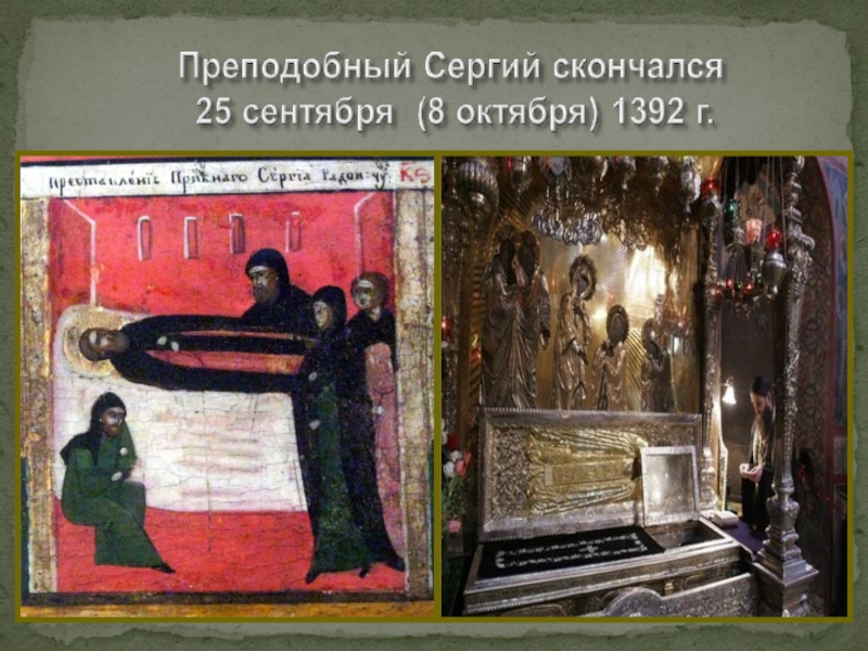 25 сентября 1392 года преподобный Сергий Радонежский мирно отошел ко Господу, а через 30 лет, 5 июля 1422 года, были обретены нетленными его мощи.