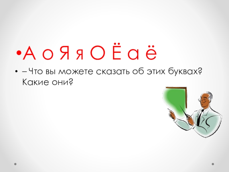 А о Я я О Ё а ё– Что вы можете сказать об этих буквах? Какие они?