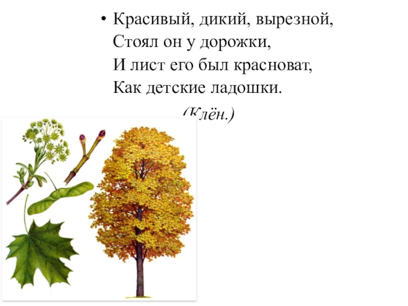 Слайд 12Красивый, дикий, вырезной, Стоял он у дорожки, И лист его был красноват, Как детские
