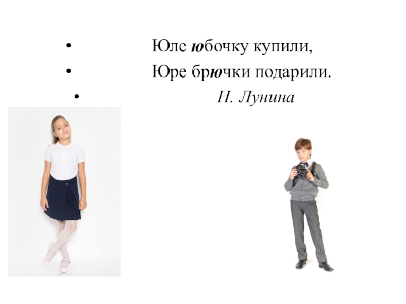 Юле юбочку купили,Юре брючки подарили.		Н. Лунина