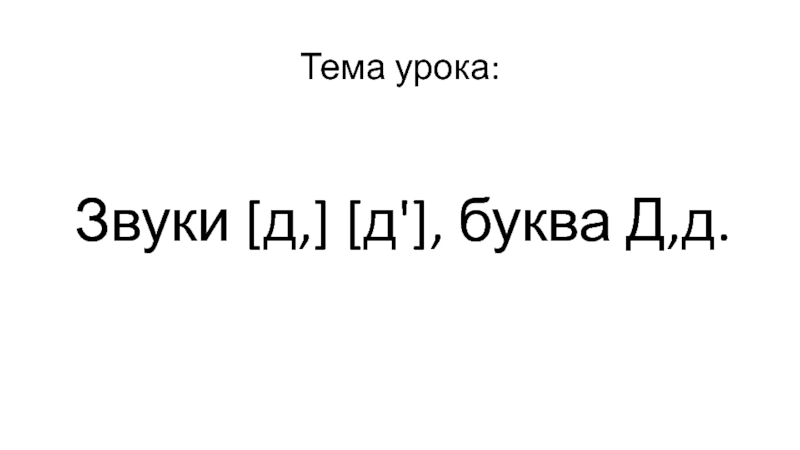 Тема урока: Звуки [д,] [д'], буква Д,д.