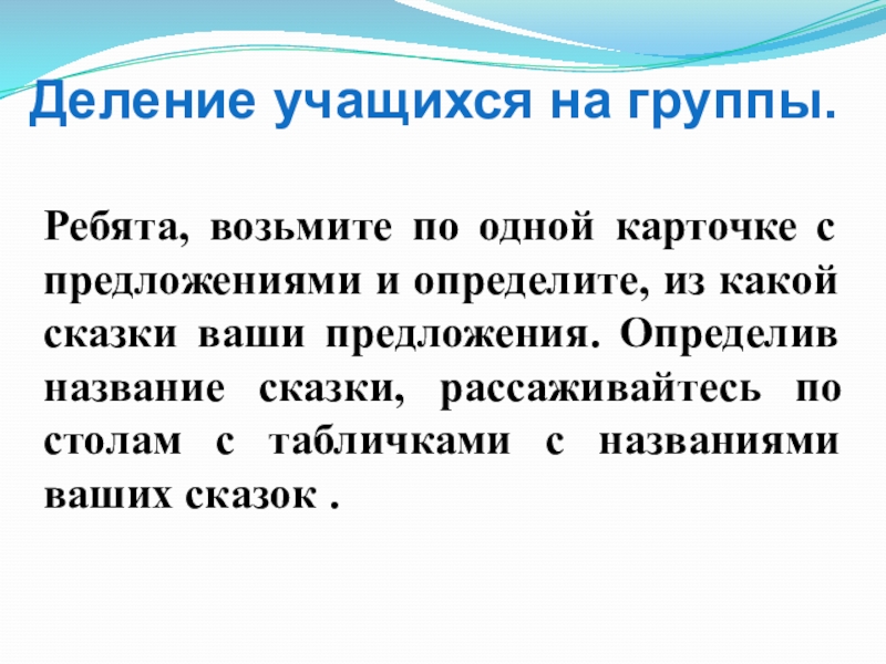 Ребята, вам предлагается расположить рисунки в последовательности событий предложенной каждой группе сказок и рассказать в парах содержание сказки, дополняя друг друга.