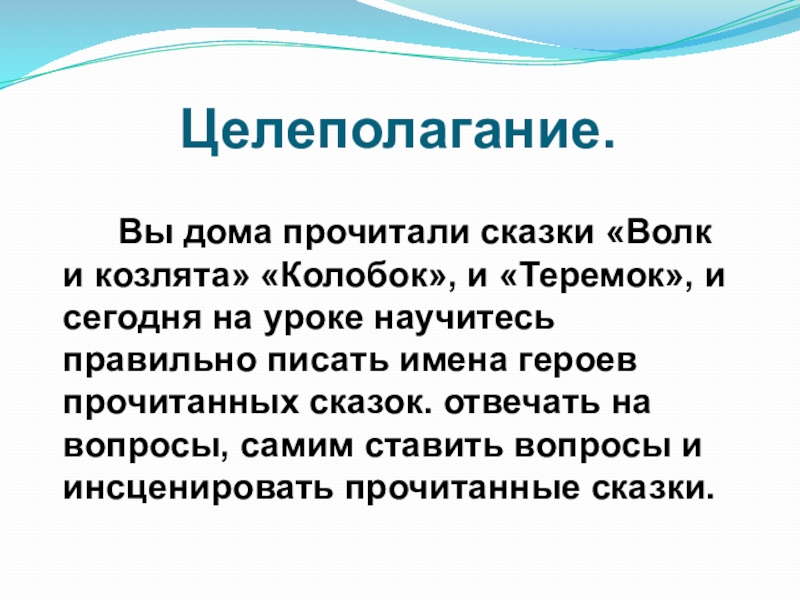 Цель данной работы: обратить внимание на правописание имён героев сказок.