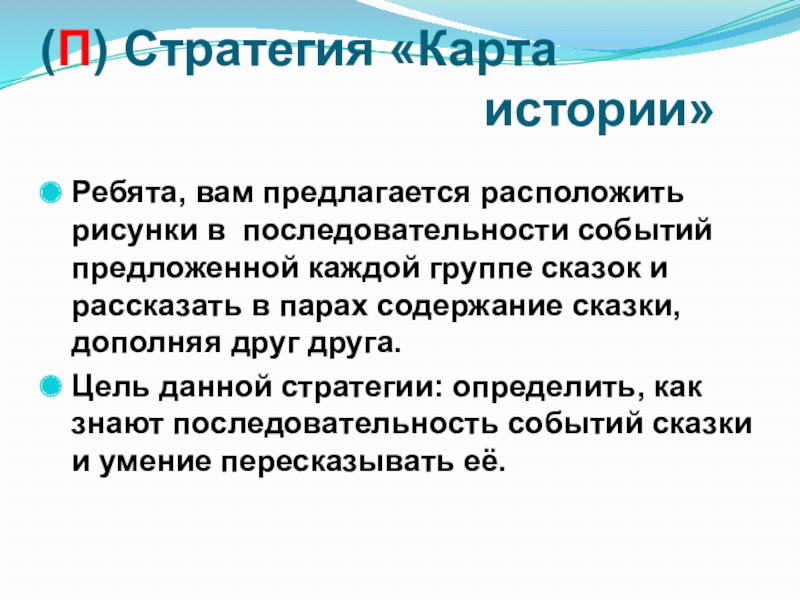 Цель данной стратегии: определить, как знают последовательность событий сказки и умение пересказывать её.