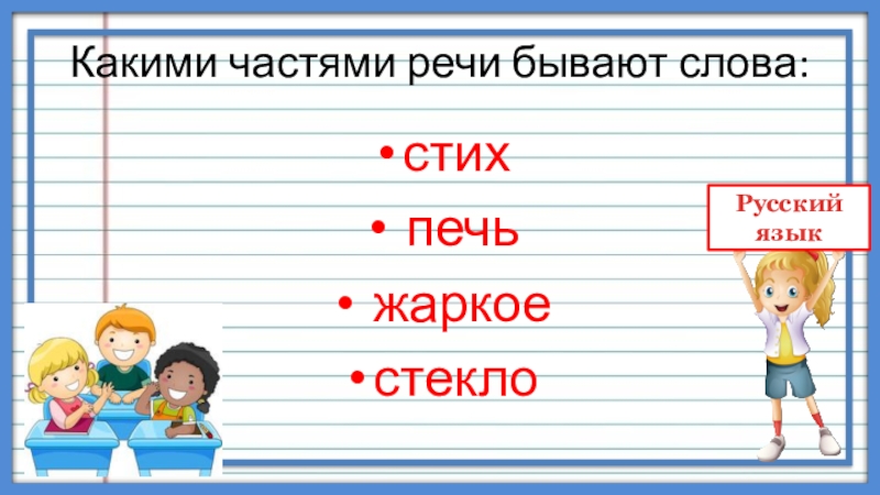 Слайд 5Какими частями речи бывают слова: