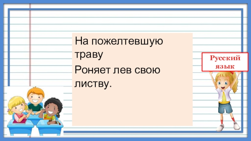 На пожелтевшую травуРоняет лев свою листву.