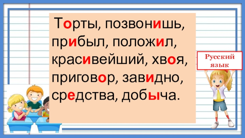 Торты, позвонишь, прибыл, положил, красивейший, хвоя, приговор, завидно, средства, добыча.